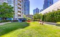 Very secure and quiet 3 bed, 2.5 baths, 2 level 5th flr T/H. Over $100K in recent renos: laminate floors on main, plush carpeting on staircase + 2nd lvl, chic vinyl flooring in washrooms, high-end stainless steel washer & dryer, refrigerator, gas stove and dishwasher from Whirlpool and Samsung. 3 spacious bedrooms with ample closet in the primary [can accommodate a king bed]. Gas fireplace. Generous 17’ x 11’ patio adjacent to huge communal garden and playground. Amenities: concierge, gym, I/D pool, hot tub, large sauna and meeting room. One U/G parking and a bike storage locker. Close to Skytrain, Crosstown School, Park, the new St Paul’s, Costco, Nester’s Market, T&T grocery and Int’l Village, Roger’s Arena, BC Place and restaurants. A city centre garden oasis and fabulous family home!