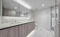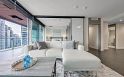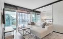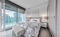 BEST Value in Avenue One. Rare park front property with spectacular views of False Creek. This home comes fully furnished and ready to move in. 2 bedroom, 2 full baths + den with over 210 sqft fully equipped Outdoor living room featuring outdoor solar shades, porcelain tile flooring, gas outlet, hose bib and wood look soffit ceiling with heaters for year round enjoyment. Integarated wood panels in the gourmet kitchen with SS Miele appliances, gas stove, quartz counters. Mstr with 5 piece ensuite and 2 closets with organizers. Extras include A/C , Smart thermostats to optimize energy efficiency, full size washer & dryer, remote to control outside shades, parking stall with EV.