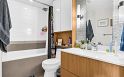 Bright and beautifully designed 1 bed + den + solarium/office in a prime Olympic Village location! This thoughtfully laid-out home features engineered hardwood floors and a sleek contemporary kitchen with stainless steel appliances with a modern designer hood fan. Polished cabinetry pairs glossy uppers with warm-toned lowers, while the peninsula island with has seating for 2, a built-in wine rack, and added storage makes it perfect for entertaining. Enjoy a spacious 5-piece bathroom, large laundry/den, and a versatile solarium ideal for a home office. Fantastic building amenities include a party room and rooftop BBQ plus a gym! A stylish, functional home in an unbeatable setting!