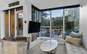 A BEAUTIFUL CITY HOME IN AN EXTRAORDINARY PARK LIKE SETTING! Walk or bike out of your own private entrance, through stunning landscaped gardens, over water features, across Hinge Park, past the off leash dog area, and straight onto the Seawall! At home, enjoy exceptional privacy and magnificent park/mountain views from both levels. The main living level is centred around a super social open kitchen (with full-size Miele wine fridge) and flows seamlessly out onto a 450 ft.² private patio for incredible indoor/outdoor living. 2 pc powder + multiple pantry/storage options. Up, both bedrooms have en suites including an opulent 5 piece primary + large dressing room. Rounding the offering out is EV parking, 24/7 Concierge, gym, party/meeting rooms, automated car wash + secure covered dog area.