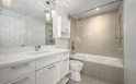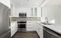 NORTH OF 4TH – Stunning TOP FLOOR CORNER 2 Bedroom home nestled on a quiet, tree-lined street. Fully renovated with an open kitchen featuring quartz counters & stainless steel appliances. Bright & airy with 9' ceilings, hardwood floors, spacious living/dining areas & cozy gas fireplace. Bright SW exposure fills the home with natural light and extends to a large wraparound deck showcasing peek-a-boo mountain views. King-sized primary suite with spa-inspired ensuite incl. rain shower, soaker tub & heated floors. Large 2nd bedroom offers ample comfort plus custom built-ins in all closets for extra storage. Includes 1 parking, 1 locker & in-suite laundry. PET-FRIENDLY building in unbeatable Kitsilano location—steps to W 4th shops, cafes & a short stroll to the beach!