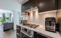 Welcome to The Leveson, nestled in the vibrant South Granville neighborhood. This QUIET (away from Granville) ground-floor, single-level 2 Bedroom + Office home boasts 460 sq ft of private outdoor space. With its elegant, contemporary A/C design and dual access from the street and building, it feels more like a townhome. The chef-inspired kitchen features premium Bosch appliances, a gas cooktop, and quartz countertops with a sleek waterfall edge. The spacious primary bedroom easily fits a king-sized bed, includes a large walk-in closet, and a luxurious double vanity ensuite. Two generous patios with gas hookup are ideal for BBQs and entertaining. Unbeatable location near transit, shops, dining, and top Vancouver schools. Includes 1 EV parking and upgraded locker attached to the stall.