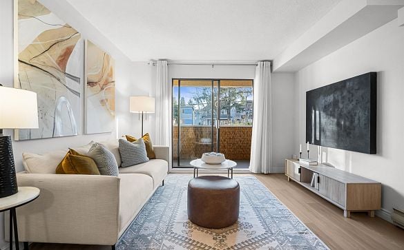 Stunning 2 bed + den, 2 bath corner 2nd floor garden suite in Olympic Village’s Proximity. Bright & airy with floor-to-ceiling windows & 9’... Read More >