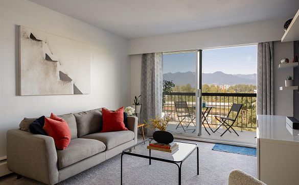 Welcome to Pacific Terraces, a bright 1bed, 1bath, 612SF home w/ beautiful NorthShoreMountain views. Fully reno'd kitchen 2018: cabinetry, counters,... Read More >