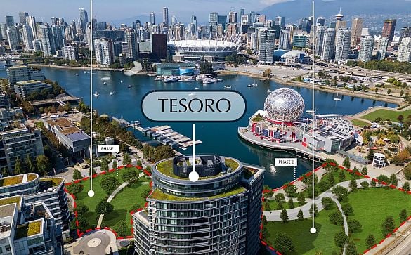 Exclusive waterfront end-unit Townhome @ Tesoro, Concert’s crown jewel on False Creek. This rare 2-level 2551sf, 3BR+den, 3-bath plan feat's 450sf... Read More >