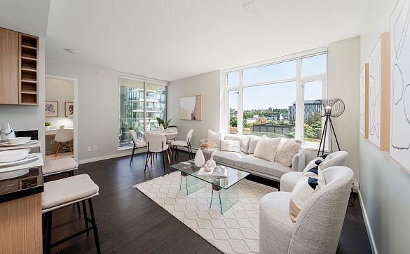 VIEWS! Welcome to the prestigious Wall Centre in Olympic Village—this spacious 1 bedroom + den, 1 bathroom home is a rare offering. Solid concrete... Read More >