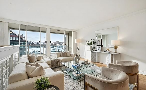 Luxury waterfront living at Icon Towers. This rare 1-bedroom + den offers serene views of the lush courtyard and the celebrated Spinning Chandelier.... Read More >