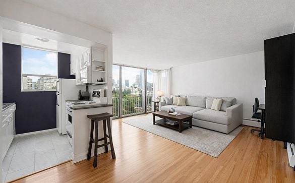 Live the ultimate West End lifestyle in this 561 sqft, 1 bed, 1 bath prepaid leasehold gem! Featuring refinished hardwood floors, a renovated kitchen... Read More >