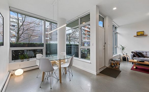 Big, cool & modern 2 level Olympic Village townhome with polished concrete floors, big windows & tasteful finishing. You'll love the open kitchen... Read More >