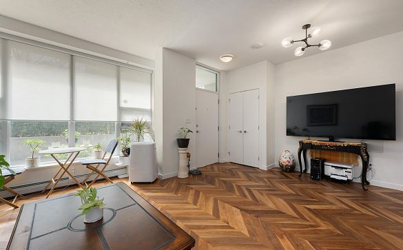 Townhome Living in the Heart of Olympic Village. This beautifully maintained SOUTH-FACING CONCRETE 2 Bed + Den, 2 Bath home features luxurious... Read More >