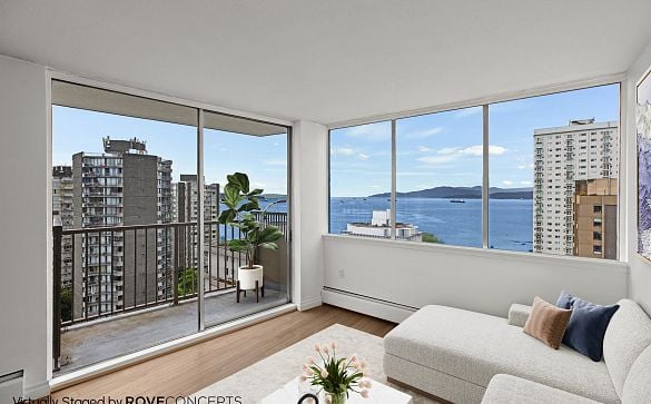 HIDDEN GEM: Fully furnished, beautiful, bright, spacious 1BR on 12th floor. West of Denman w/ gorgeous views to English Bay, Stanley Pk & mountains.... Read More >
