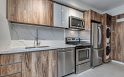 Oakwood,stained unit entry doors Touchpad smart unit entry locks Smart lighting Solid wood, noise-reducing doors throughout In-suite washers/dryers Stainless steel appliance package with OTR microwaves High-end kitchens: oak plywood cabinets, marble countertops and marble backsplashes, under counter LED lighting High-end bathrooms: oak plywood cabinets with marble backsplashes, Nuheat in-floor heating, wall tiling throughout Extensive oak plywood millwork in all units: wall-beds in all studios, custom tv cabinets Herringbone, walnut hardwood floors in all bedrooms Accent tiled walls in all bedrooms