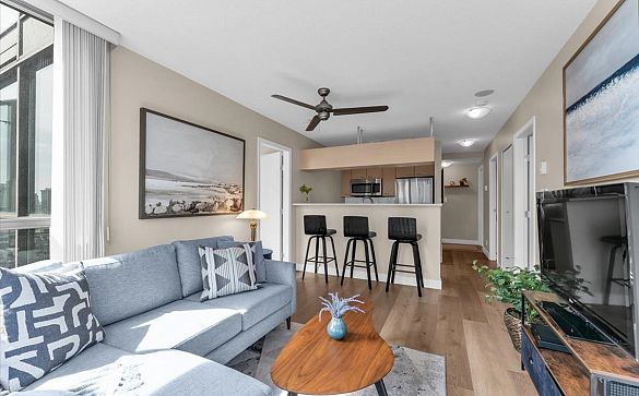 Bright and beautiful 1bedroom plus den at The Park, just steps from Stanley Park, Lost Lagoon, Coal Harbour, and the Seawall. This home enjoys... Read More >