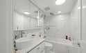 This stunning 2 bedroom, 2 bathroom plus den, features an open living and dining concept with beautiful wooden floors throughout, and a floor to ceiling windows that offers great view of the neighbourhood, in which you can also use the blackout roller blinds for added privacy. Kitchen is complete with stainless steel appliances including 2 ovens, built-in dishwasher, 36” French door fridge and freezer, and glass top stove with quartz counters. Spacious ensuite Master’s Bedroom with walk-in closet and main bathroom that showcases rain shower and soaker tub. In-unit laundry and 1 parking stall included with visitor parking available. General amenities include gym, indoor pool/hot tub and meeting room. Conveniently located in DOWNTOWN VANCOUVER, perfect place to experience downtown living.