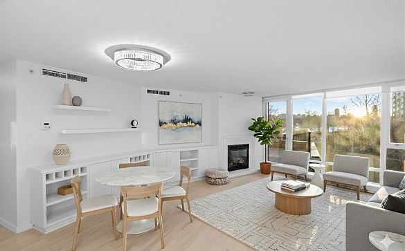 Live on the Seawall in Yaletown! This urban view includes a bit of cityscape, a bit of ocean, and the lush greenery of Cooper's Park, providing a... Read More >